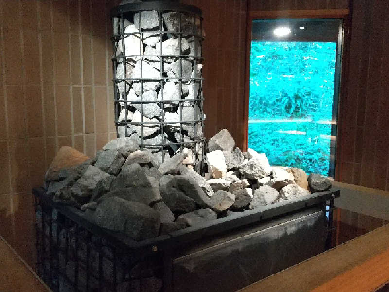 ここは座面よりサウナストーブが低い位置にあるので必然的にロウリュをせずとも熱め。