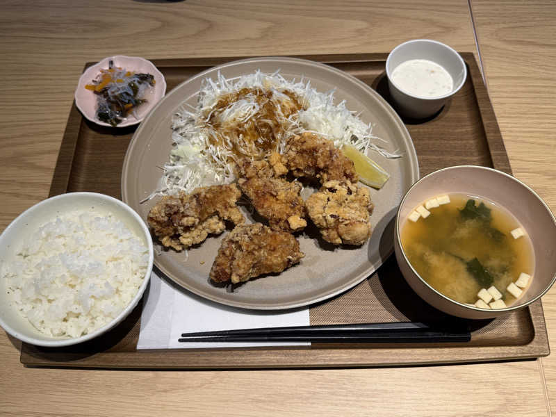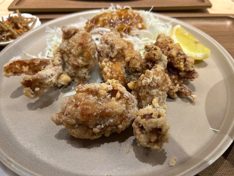 からあげが6個とボリューミーで、衣まで味がしっかりあって美味しかったです。タルタルソースも良きです。