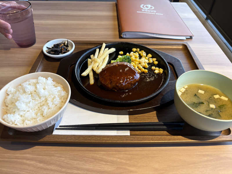 ハンバーグをデミグラスソースで纏わせ白米の上にダイブ。ハンバーグも白米も美味しかった。
