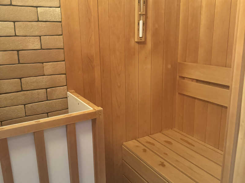 アクアテラスのスパスイート(露天風呂.プライベートサウナ付き)を予約すると部屋にサウナがあります。 自分でサウナの温度を設定できます。 サウナが温まるまで時間が掛かるので到着後すぐに温めるのが◎