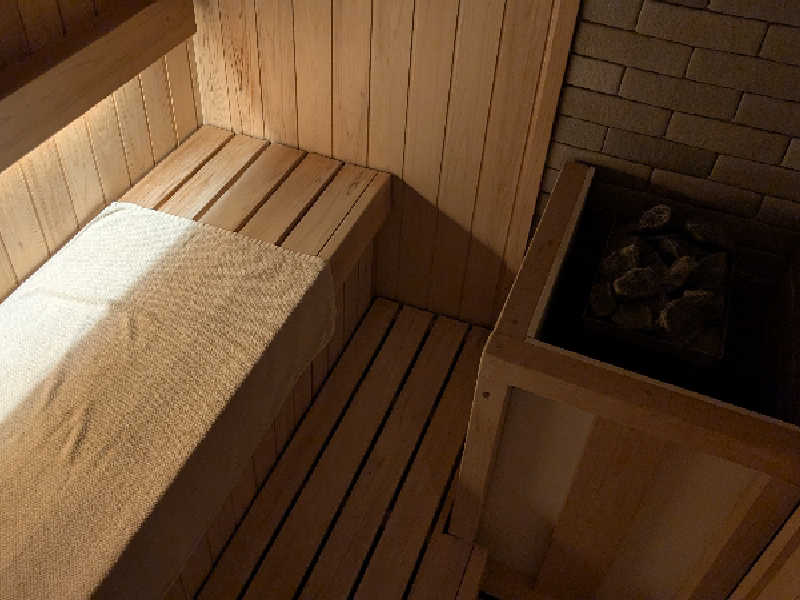 コンパクトだけど嫌な乾燥はなくて、ロウリュしっかりとどまるので汗ダバダバ出ますねぇ