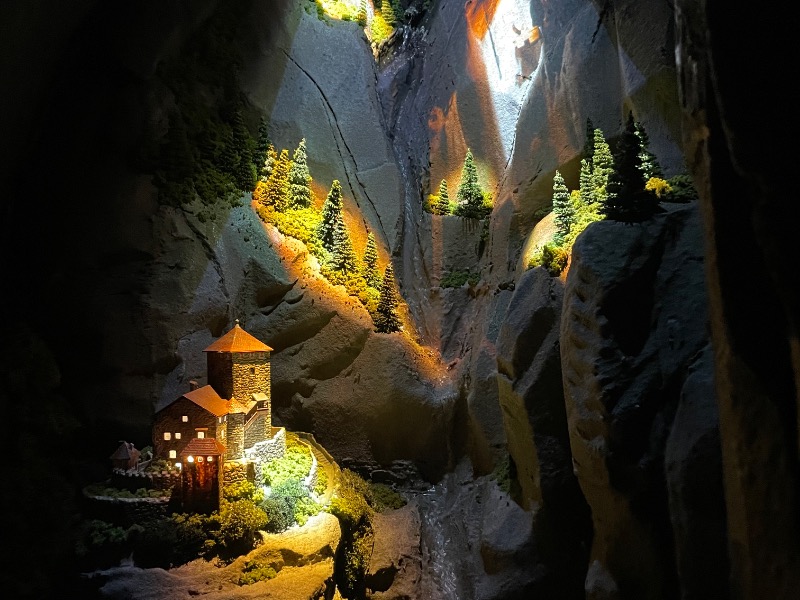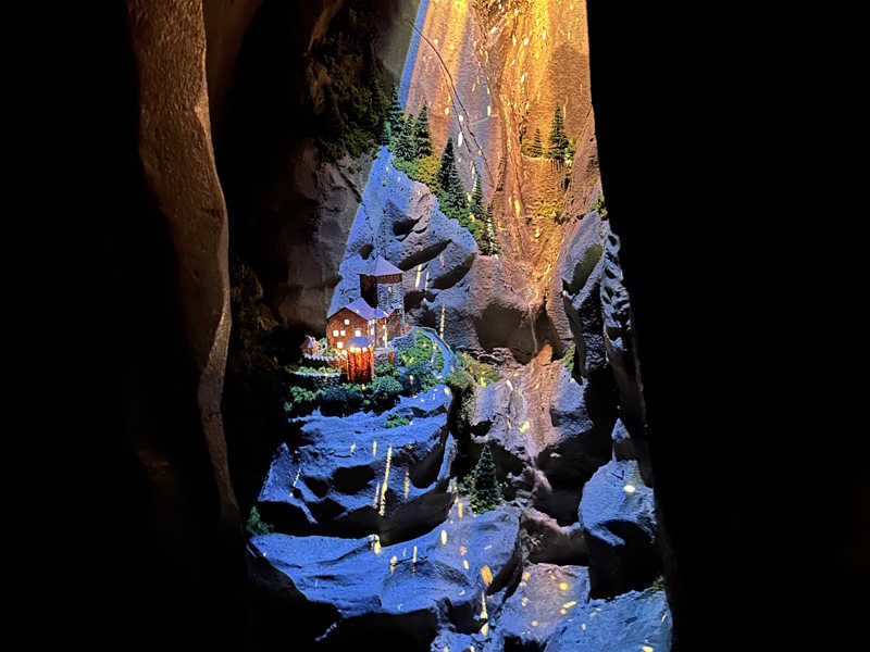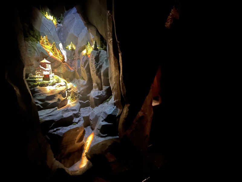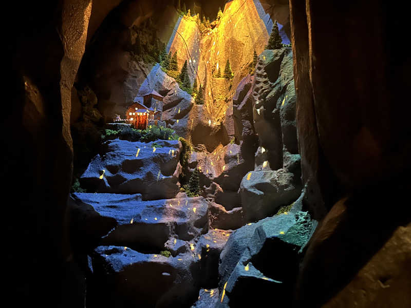 地下水をそのまま使用しているので硫黄の香りがする水風呂。常時垂れ流しのためほんとに洞窟の奥にある湖に入っているような気分になれる🚰横長で1段段差あり。2-3名くらいだったら入れそうな感じ!深い方はおしりをつけて少し上を向けばぴったり!上を向くとこれまたびっくり!ミニチュアの家がプロジェクターで照らされていて幻想的な雰囲気✨️温度も入りやすいためずっと眺めていられる🤤
