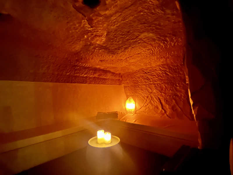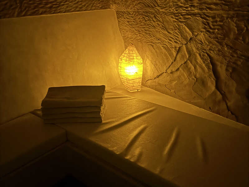 また内気浴がとても良い、、広々と寝れるスペースがあり、洞窟の中でととのう初めての感覚に感動。