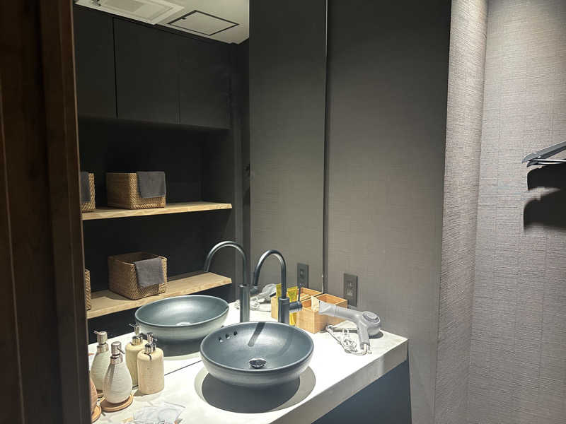 彼女との1年記念日を祝してこちらへ!初スナックで緊張しながら真っ赤な扉を開けて入店🚪そこにはドラマなどで見たことある景色が😳席に通してもらい、お水を頂きました!ママがお酒じゃないから安心してとジョークを交えてくれて面白かった🤣サウナの前にLINE登録を行い、そこからドリンクや空調,オートロウリュの調整を頼める!いざ、お待ちかねのサウナへ。まさに異世界。洞窟のような空間が広がっていてスナックにいるなんて嘘のよう😳脱衣所が2つあり1部屋4つ籠があったので最大8人🧺ドライヤーは計3台。トイレも2つあり、大人数でも利用可能🙆♂️まずは店員さんが丁寧に案内をしてくれる💁ほんとに幻想的な空間でサウナが楽しみ!