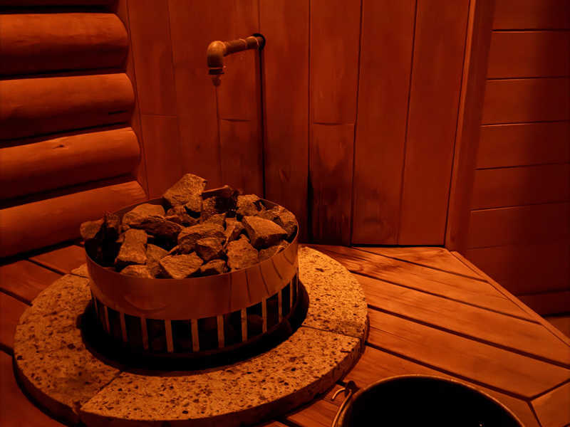 入口で1段上がるとフルフラットな室内。人数分サ室にマットが用意済。ストーブを照らす小さな赤い光のみで真っ暗。目がなれるのに時間がかかるけどこういうサウナが好き🫶両サイドにストーブが1つずつあり、大半は床に埋められていて頭だけが出ている形。2つセルフロウリュ用のアロマ,紅茶だったかな?が用意されていてとてもいい匂いが広がる𓂃個室には珍しくオートロウリュもあり、かなりの威力!