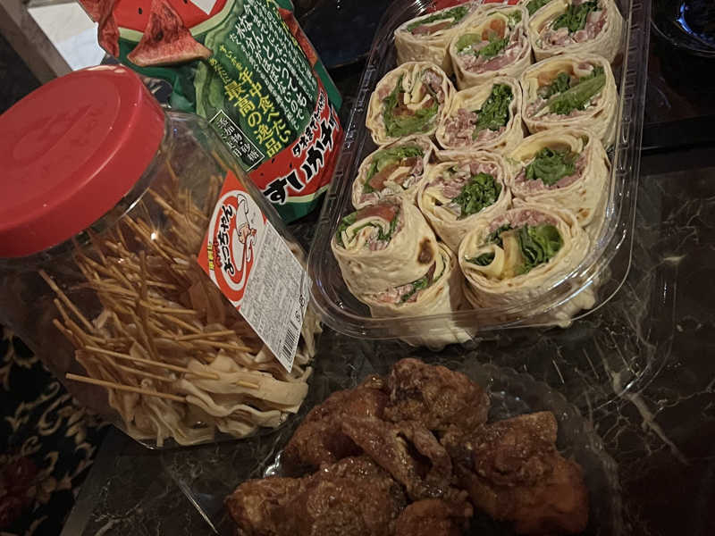 本当に良く関東のサウナに行く様になったと思う☺️何時も声を掛けてくれるそんな2人に先ず感謝😌れもん水さんが注文してくれた餃子も美味かったし✨みーちんサンが買って来てくれた、よっちゃんイカも久々に食べたら美味いし😆