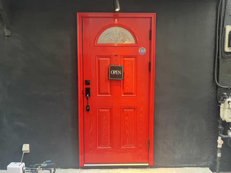 青物横丁駅から徒歩3分。1本路地裏に、黒い建物に真っ赤な扉がポツリ。開けると、ザ昭和スナック!お酒じゃないよ〜とジョークを交えつつお水を提供してもらいながら説明を聞き、LINE登録を済ませる。サウナスペースに入ると完全プライベートのため、ドリンクの注文や空調調節、ロウリュ調節などはLINEでやりとりするとのことで 新鮮さと現代らしさを感じた🫧