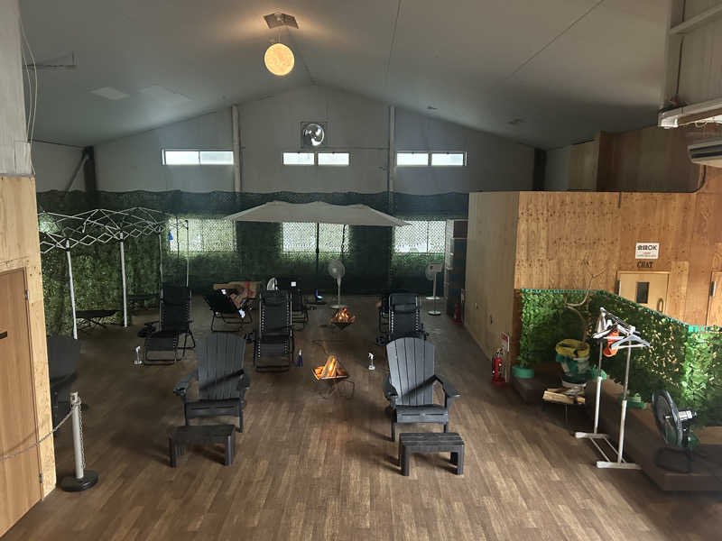 手作り感溢れるサウナ特化施設。サウナ2つとキンキンの水風呂。元工場ぽい建物にはインフィニティからアディロンダックが並ぶ広いととのいスペース。