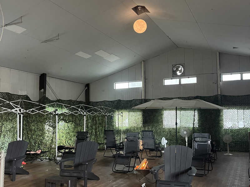 全体的に薄暗いととのいエリアには色んな種類の椅子・ベットが置いあり扇風機が、ベットや椅子…ふたつにつき扇風機が1台付いてくる🤔素晴らし〜