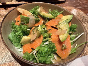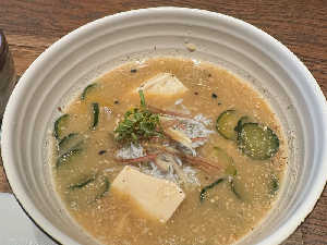 ほぐした焼き魚、しらす、茗荷、大葉、胡瓜、豆腐。 さっぱり美味😋胃カメラで組織取った胃に優しい。。