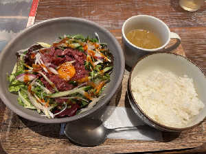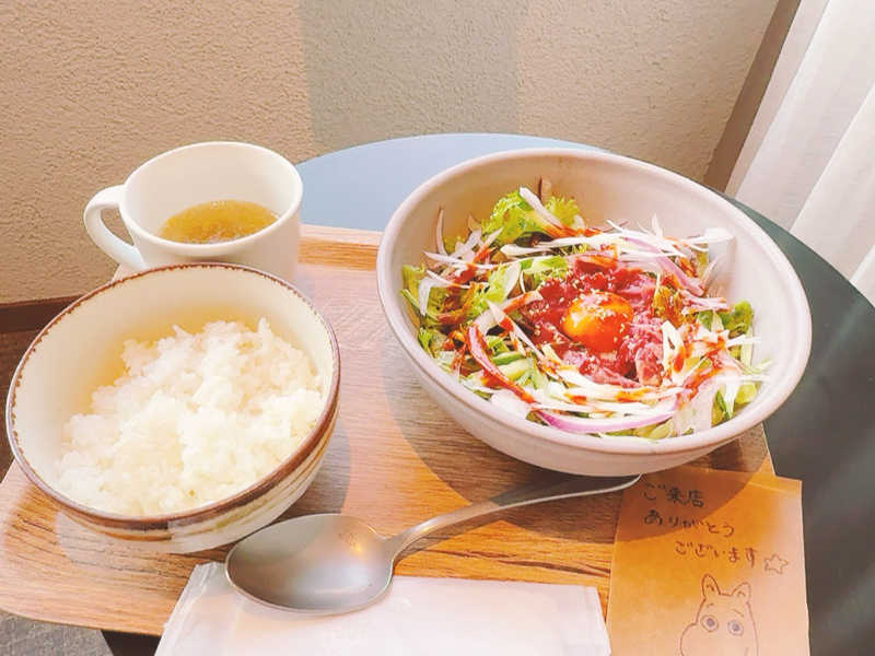 ご飯別盛りよりご飯の上にユッケでいいのになー🤔 もう少しユッケがあると嬉しい🙄