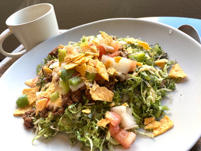 スパイシーな挽肉とシャキシャキ生野菜の組み合わせがおいしかった😋