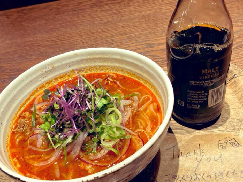スープおいしい♡おにくたっぷり🙌麺の歯応えすごかったんだけど、これ合ってる?たぶん何か忘れられてる😂