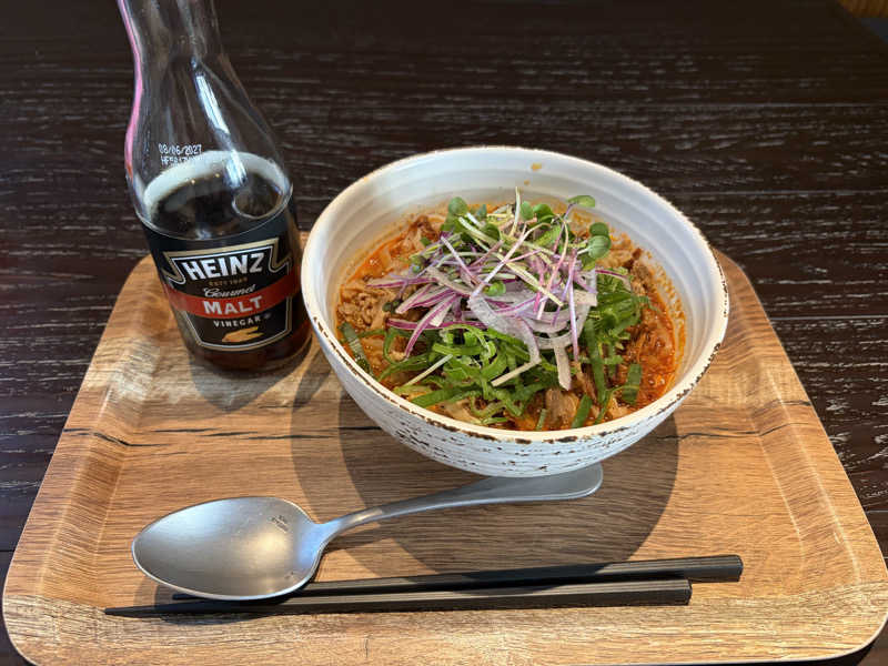 発汗を促す辛めのサ飯ってむしろサ前向きな気が 牛肉たっぷり、ビネガーで味変すると二度美味しいです