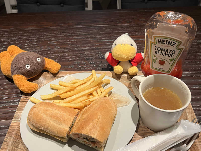 美味しいオニオンスープ、ポテト付き。 はじめ小さく見えるけど、食べ応えもありカラダに嬉しい。