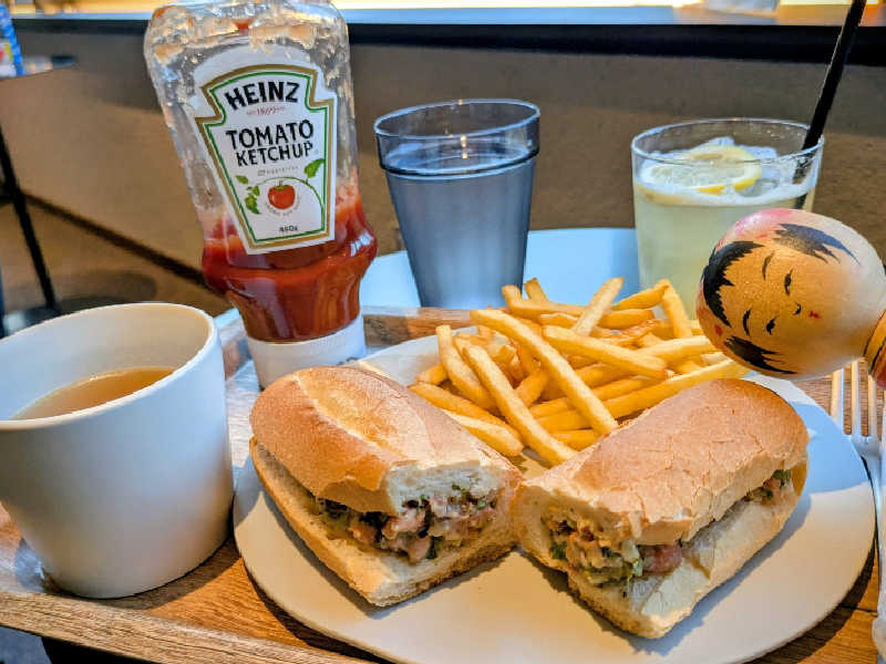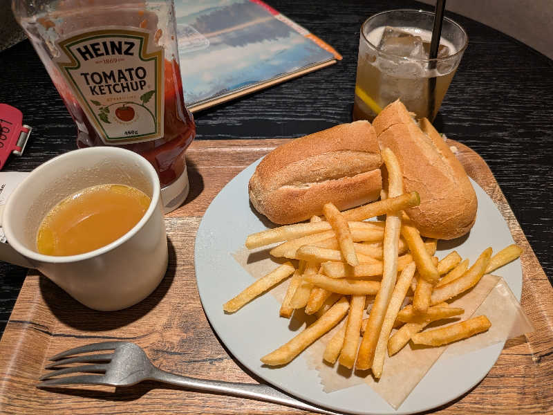 ポテトもカリカリ、さっぱりめの味付け、オニオンスープ最高!