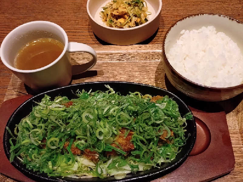 ねぎたくさん。ただご飯めちゃ少ない。 男は少し物足りない