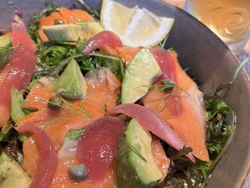 パンサクサクでサーモンやチーズ、サラダの具がうまうまー!