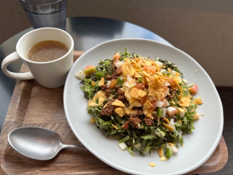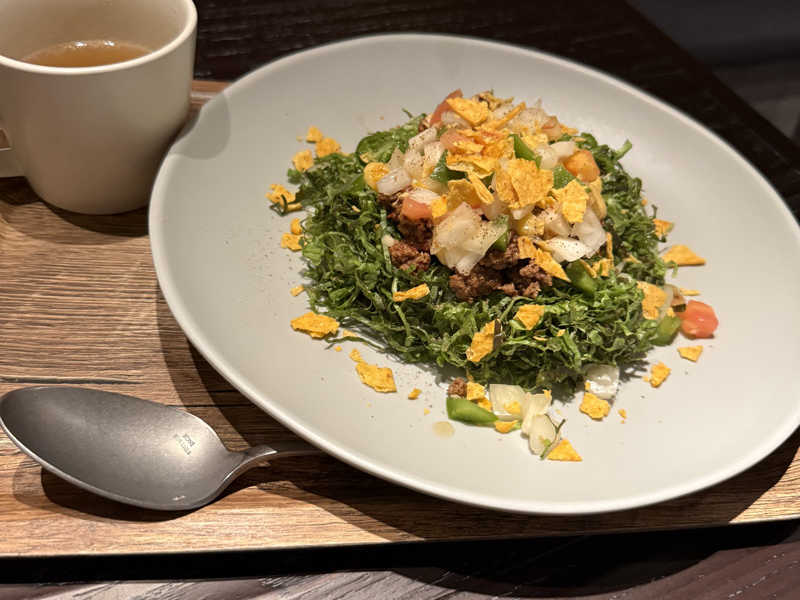 トマト、タマネギものってて、ピリ辛でおつまみに良し