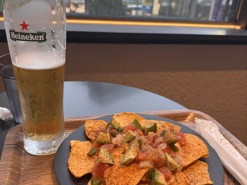 3回目のサウナハウスで初めてのレストラン。ハイネケンと一緒に。