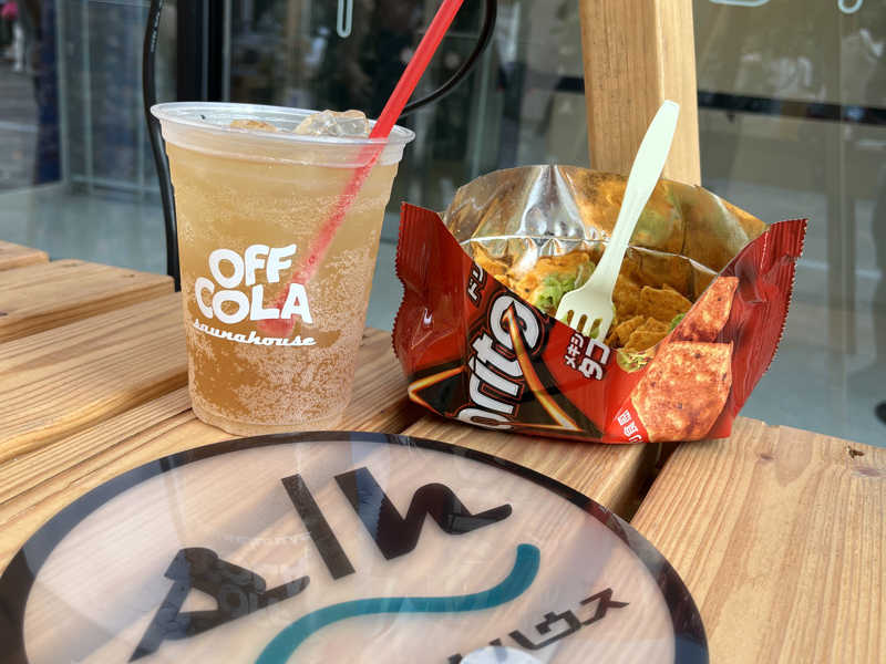 屋台のタコスミートスナックと、サウナハウス屋台のOFFCOLAのクラフトジン割の相性がサイコー!