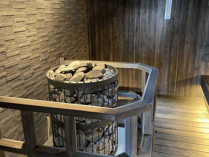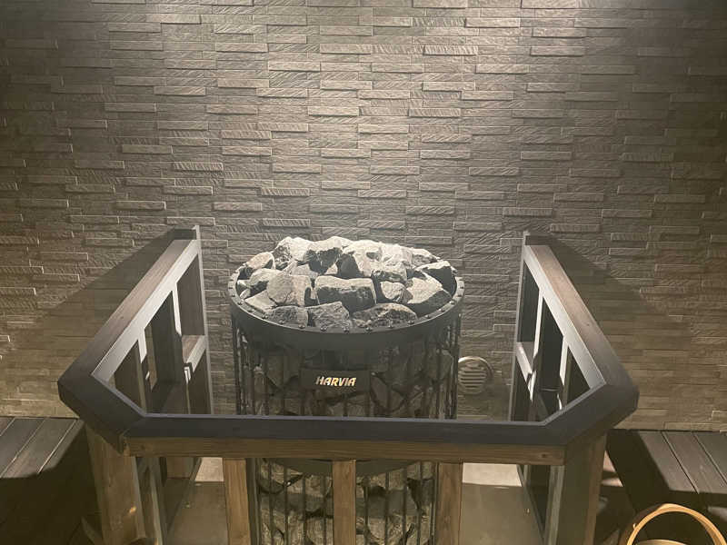 続いて設備。真新しい各種設備。サ室もきれいで、HARVIAのストーブを中央に2段、計10人以上は収容でき、セルフロウリュ可。