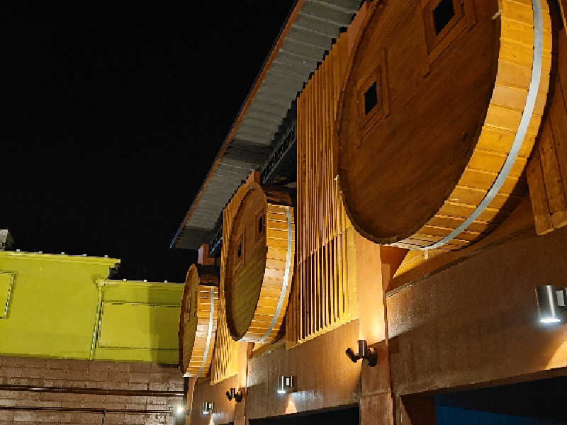 一見普通の宿泊施設…と思いきや窓の外には巨大なバレルがドンッと待ち構えています。