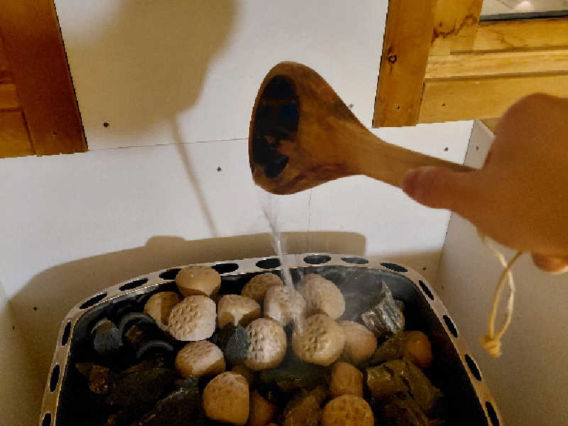 早速ラドルで3杯ロウリュしたところ湿度が上昇し60%を超え、それと共に私の心は飽和状態に🌼