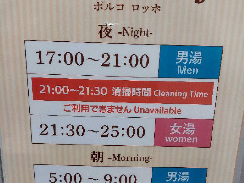 女湯は21時半〜サウナ付き大浴場だから