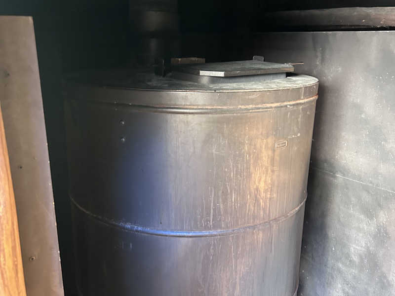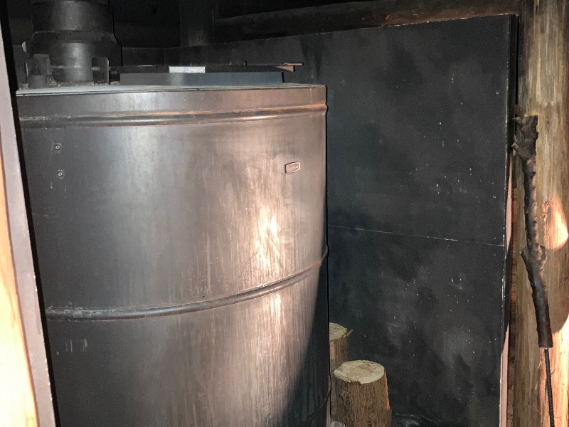 熱源は入ってすぐ左手にある大きな釜のようなもの。これの上部の蓋を開けてロウリュをして蒸気浴を楽しむという正に本物のフィンランド式のサウナ。