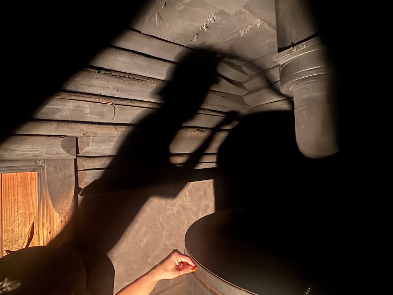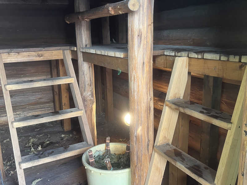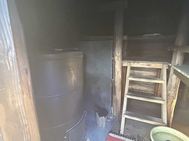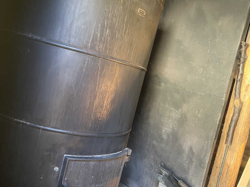 長時間直火でストーンを温め、火を消して煙を外に追い出し、余熱で温める、日本ではほとんどお目にかかれないスモークっぽいサウナだ。