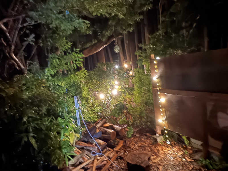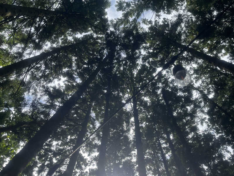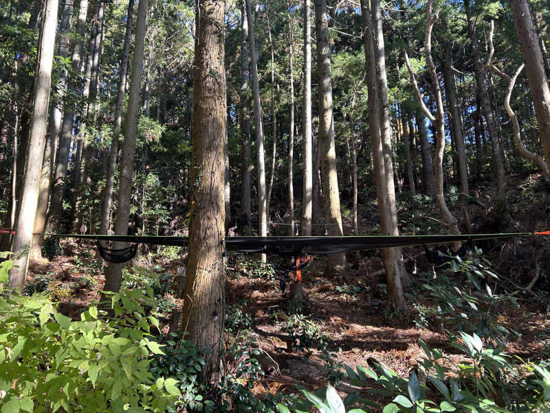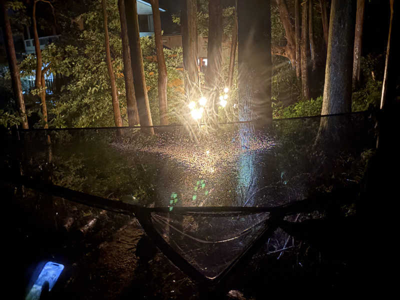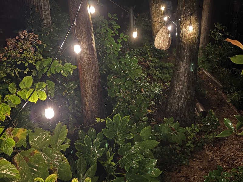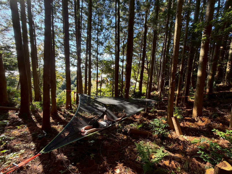 外気浴は水風呂から少し進んだら寝っ転がれるところがありますが、オススメは巨大ハンモック。仰向けに寝れば生い茂っている木々と、ほんの少し見える星を眺めながら外気浴出来ます。時折肌に当たる風も良い。木々に囲まれてるからそこまで強い風も当たらないので、身体の冷えは問題ないと思います。