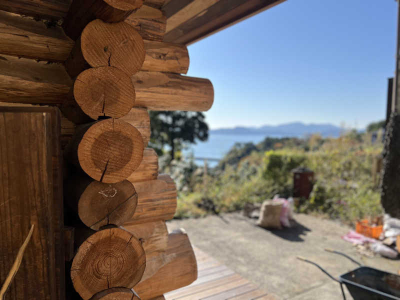 今日は天気も良く、風はありましたが気持ち良い外気浴が、出来ました。青空と海を見渡せる景色とても綺麗で素敵でした!ログサウナの設計や組み立てもオーナー自ら行っていて、しっかりとコンセプトにあったサウナだなと体験して感じました。