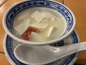杏仁豆腐クーポン150円。夜は中国人のアルバイトの人に聞くと、このメニューだけでもOKしてくれた!