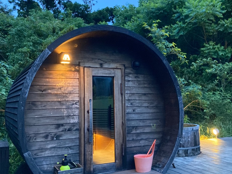 ▸バレルサウナは国産の檜を使った特注品とのこと。いやぁ、檜の香りがすんごい心地よいんです