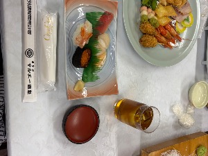 これを2セットいきました。カレーが秀逸。デザートに桃の缶詰とミニ大福もいただきました。