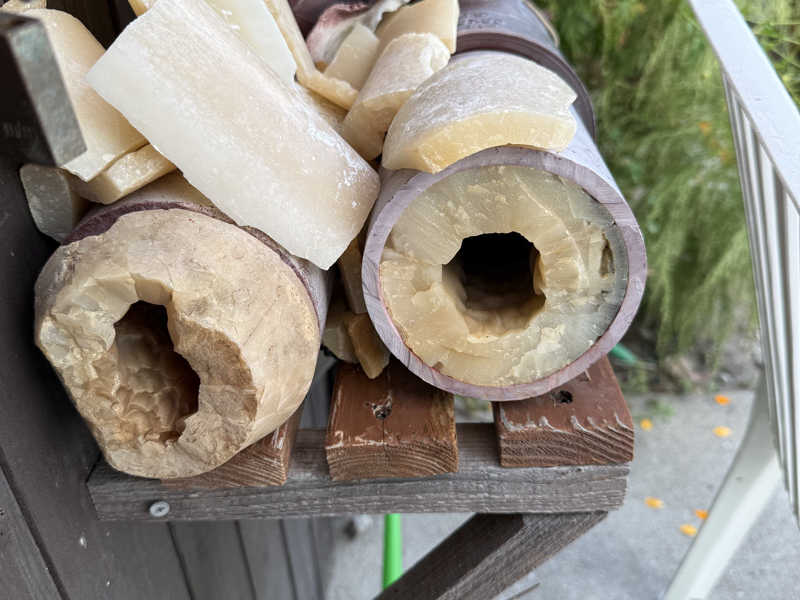 浴室内に手作り感のある木製のサウナ小屋が。1メートルぐらいの長さのハロゲンヒーターが3本並んだコンパクトな珍しい熱源。MAX温度は想像もつかないけど、入った時はあっという間に60℃弱から70℃付近まで上がっていった(設置温度計)ので、馬力はそこそこあるのかもしれない。