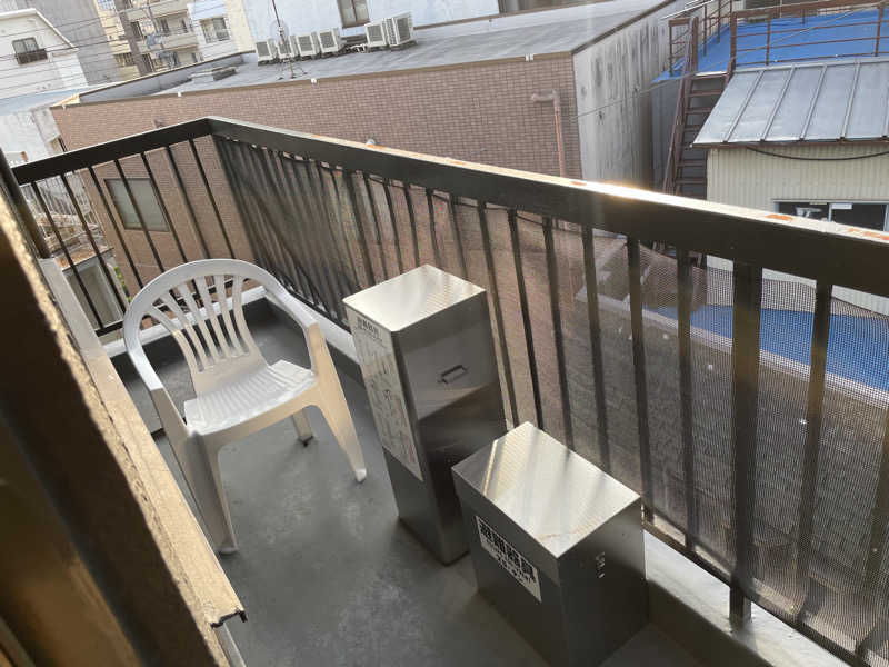 ベランダにはアディロンダックチェアもあり、一応外気浴も可能。ただし周囲の視線があるので服は必須。