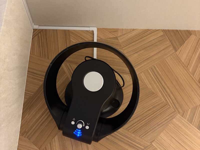 ちゃんと部屋角にそれ用の扇風機も付いてて