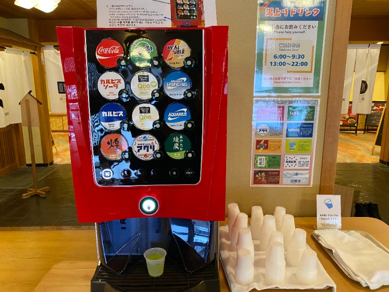 着替えた後は、休憩場でのフリードリンクを堪能
