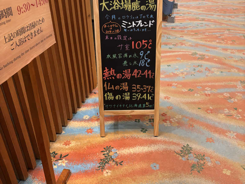 1ヶ所目は15時までいる予定だったんだけど、13時半過ぎには次行こうかなってなっちゃったので、すぐ目の前にあるし、予定は無かったけど、アツアツなロウリュもある定山渓鹿の湯に行こうと決定