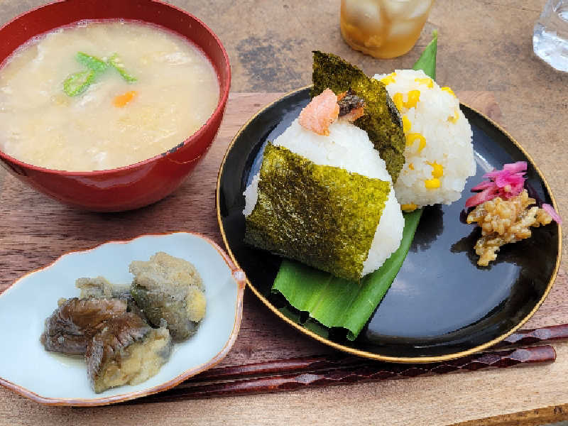 ふんわりおにぎり(梅とおじゃこ)と酒粕を使った味噌汁