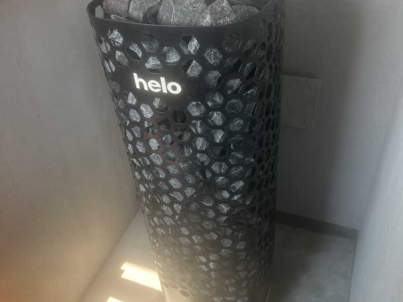 ストーンにジンジャーアロマ水をセルフロウリュしたならば…はひょ〜蒸気が広がって、室温アゲアゲ。