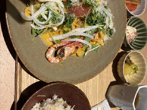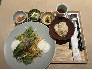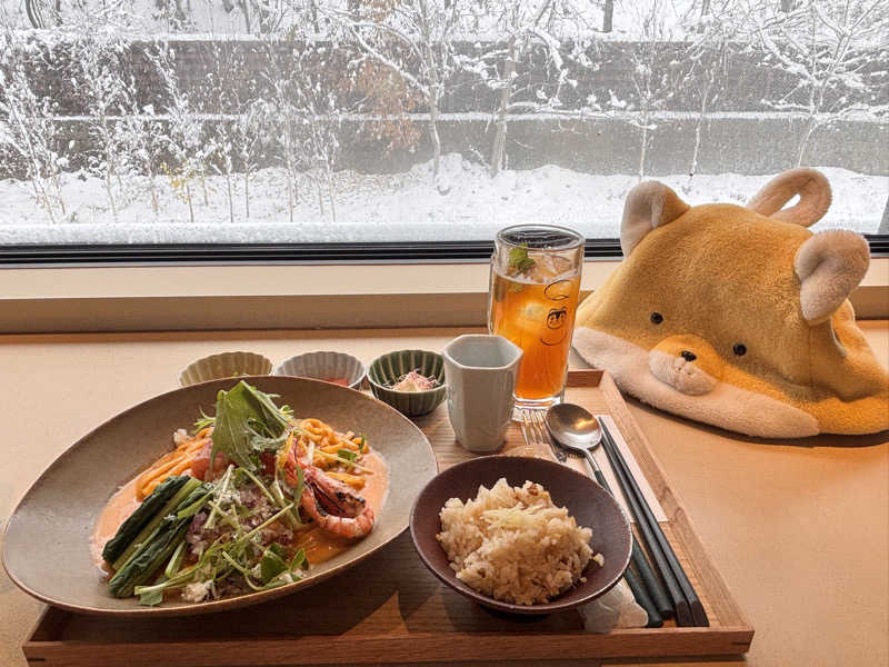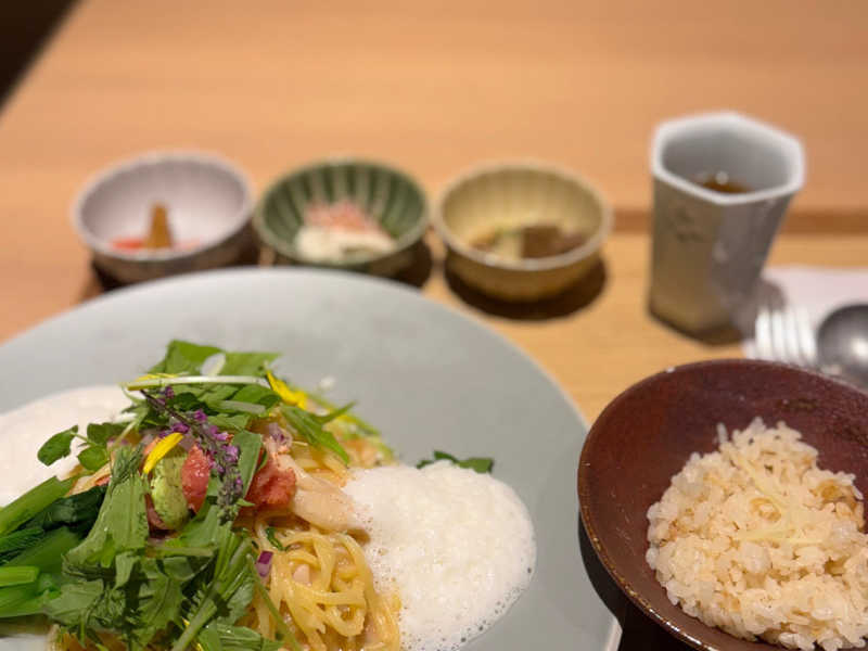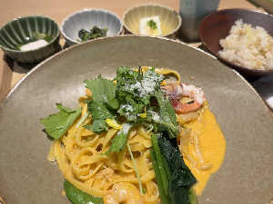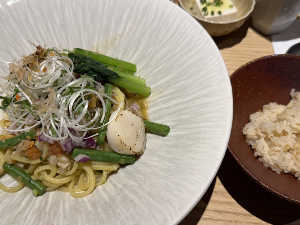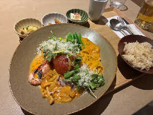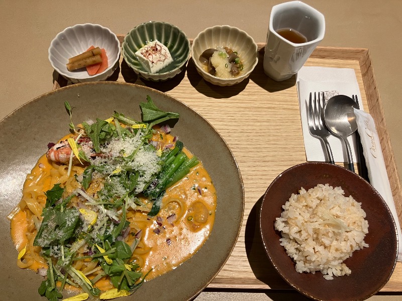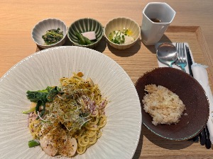 プランの夕食。メニューの中から値段関係なく好きなパスタを選べて、ご飯セットが付いてくる