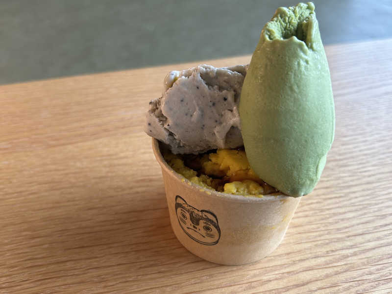 休日コイン3枚でジェラートを注文 木苺、かぼちゃ、ダークココア それぞれ特徴あって美味い!