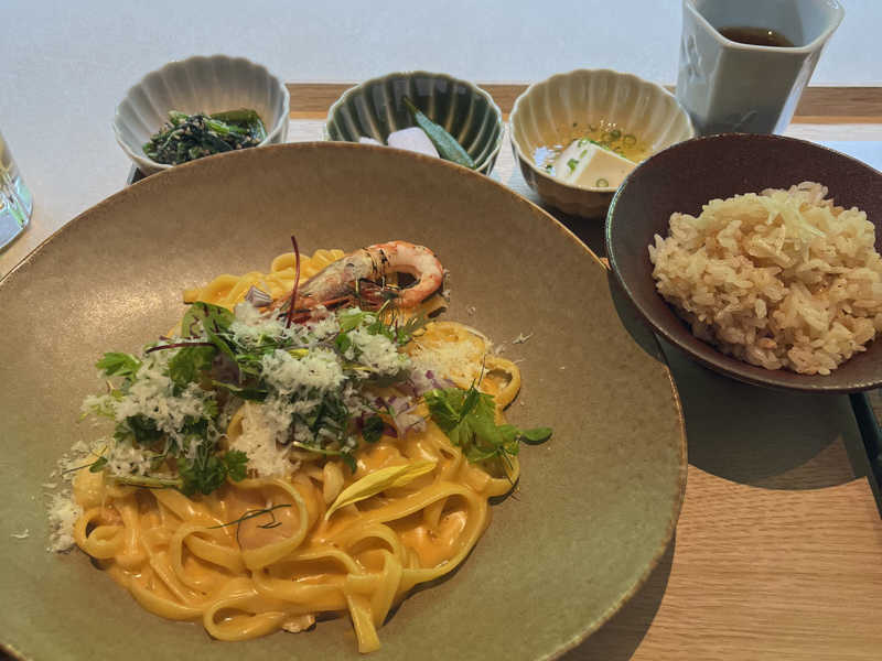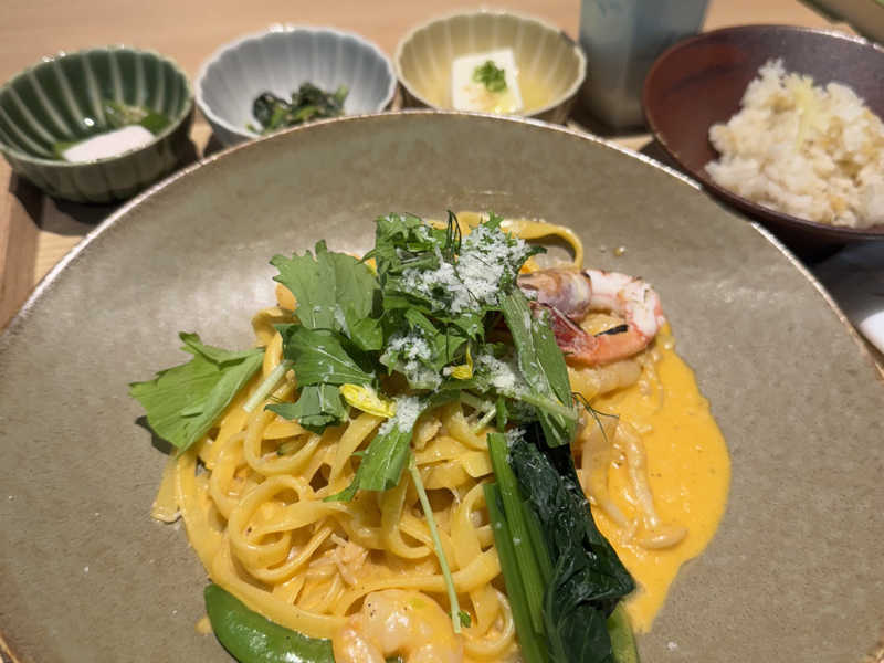 いいお値段のパスタだなと思ったけど小鉢とスープとごはんもついて大満足&お味がホテルクォリティで最高◎
