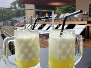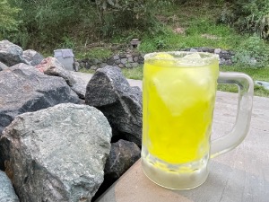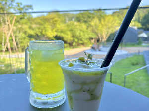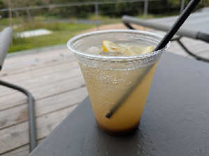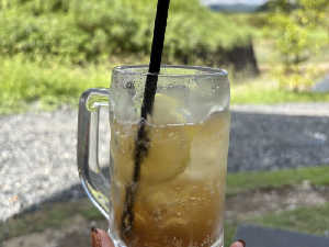 ソルティドッグのようにグラスの淵に塩が付いていて美味しかったです。オロポを凍らせた丸い氷が2つ入り!