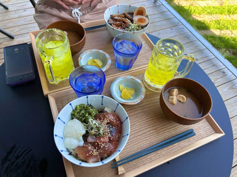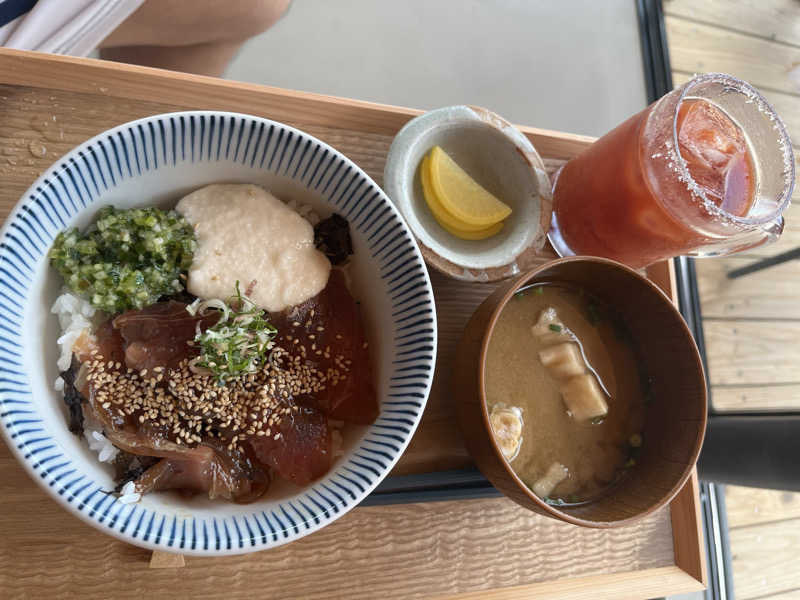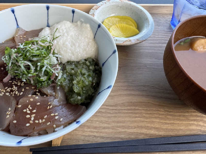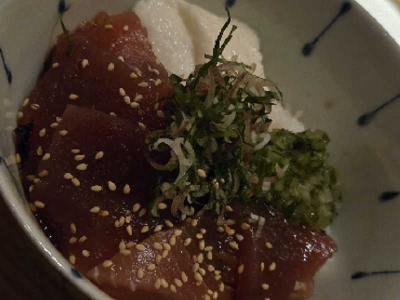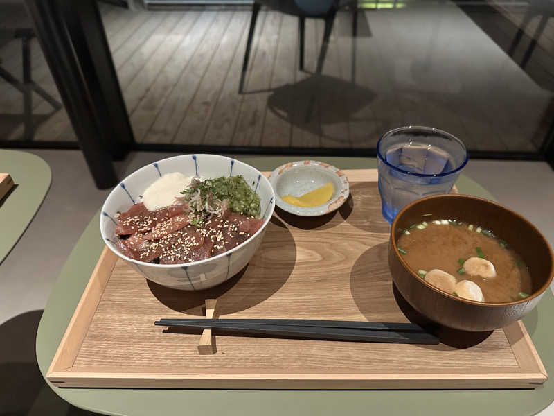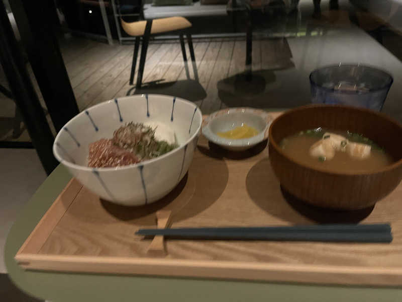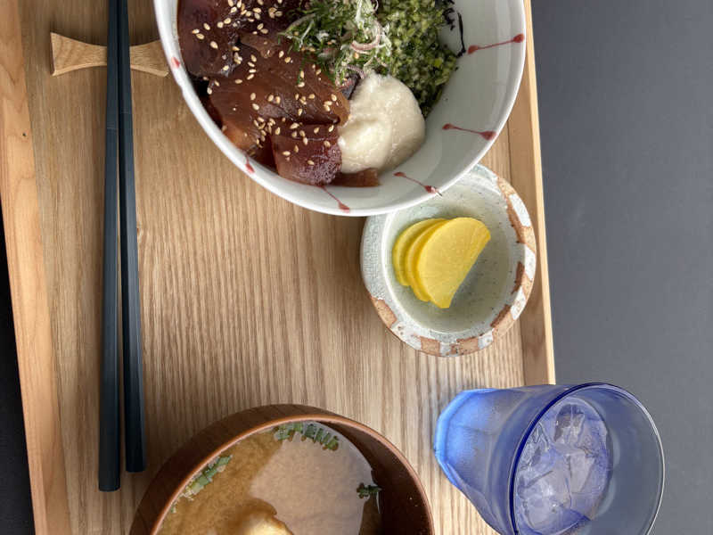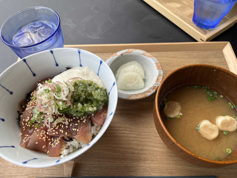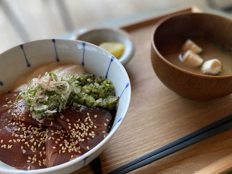 フード注文でサウナ1時間延長無料。漬け丼。ボリュームしっかりで薬味がまた美味しかった😋