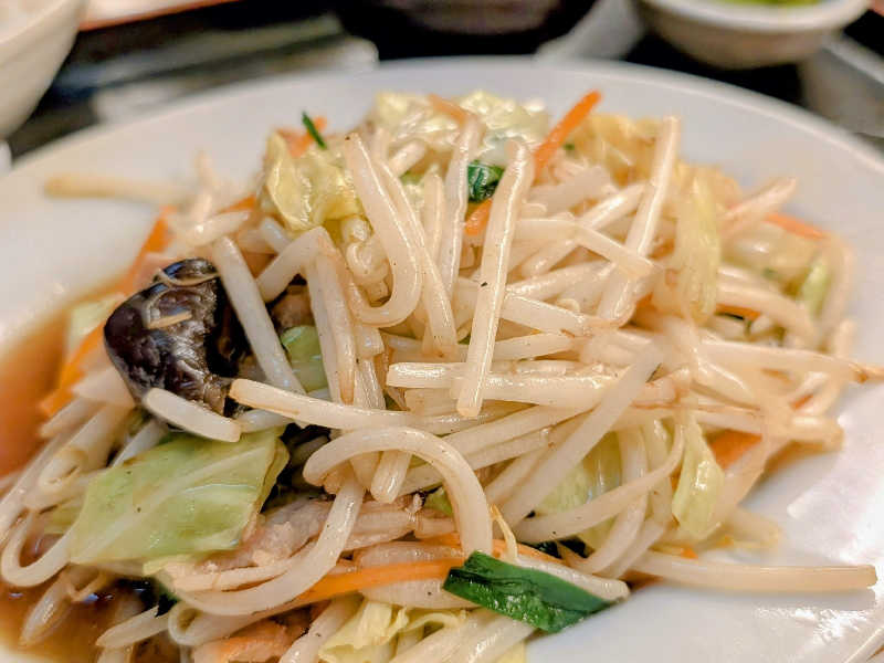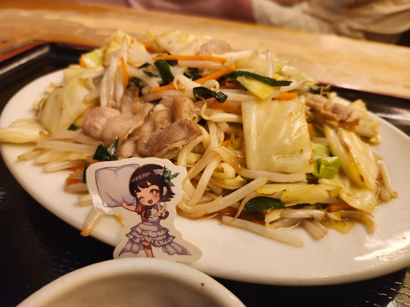 カレーと悩んみましたが、初野菜炒め。味噌汁もしょっぱくて、サウナで抜けた塩分を補給!