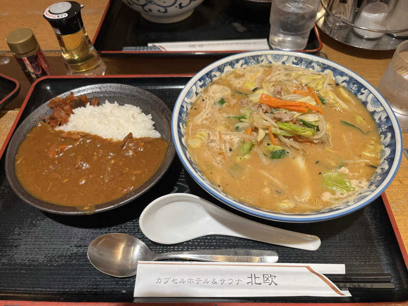 味噌ラーメン初めて食べたけど激ウマ。野菜がシャキシャキでスープもうまい。カレーは当然の美味しさ。